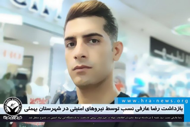 ارگان خبری مجموعه فعالان حقوق بشر در ایران، روز شنبه ۴ مردادماه ۱۳۹۹، رضا عارفی نسب، توسط ماموران اطلاعات سپاه در منزل پدریاش در شهر لیکک واقع در شهرستان بهمئی بازداشت شد.