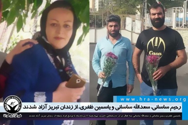 ارگان خبری مجموعه فعالان حقوق بشر در ایران، امروز چهارشنبه ۸ مردادماه ۱۳۹۹، یاسمین ظفری، رحیم و سعدالله ساسانی با تودیع قرار وثیقه از زندان تبریز آزاد شدند.