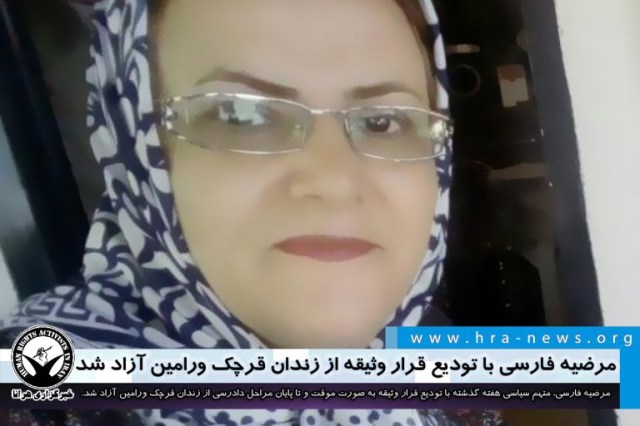 ارگان خبری مجموعه فعالان حقوق بشر در ایران، مرضیه فارسی، متهم سیاسی هفته گذشته با تودیع قرار وثیقه از زندان قرچک ورامین آزاد شد.