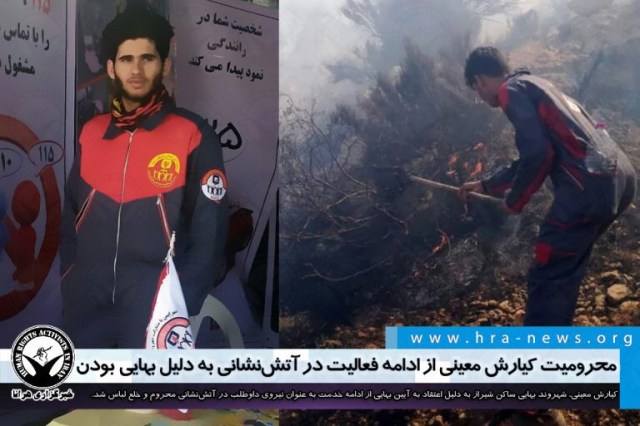 ارگان خبری مجموعه فعالان حقوق بشر در ایران، روز شنبه ۴ مردادماه ۱۳۹۹، کیارش معینی، شهروند بهایی ساکن شیراز به دلیل اعتقاد به آیین بهایی از ادامه خدمت به عنوان نیروی داوطلب در نیروی آتش نشانی محروم و خلع لباس شد.