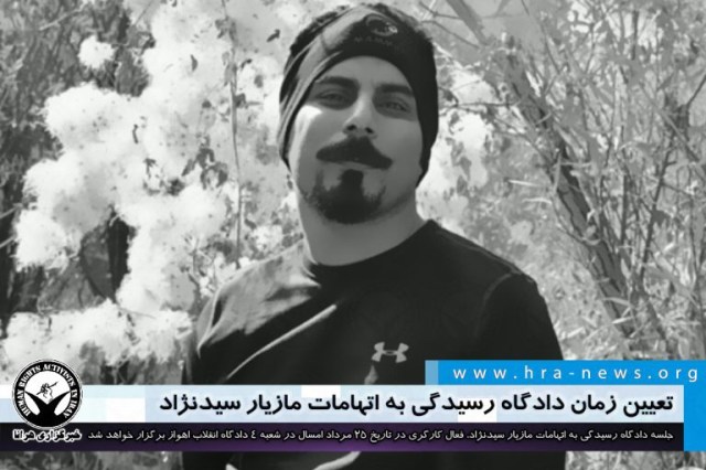 ارگان خبری مجموعه فعالان حقوق بشر در ایران، جلسه دادگاه رسیدگی به اتهامات مازیار سیدنژاد، فعال کارگری در تاریخ ۲۵ مرداد در شعبه ۴ دادگاه انقلاب اهواز برگزار خواهد شد.