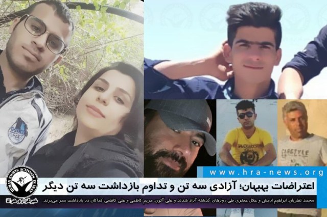 محمد نظریان، ابراهیم ارمش و جلال جعفری، سه تن دیگر از بازداشت شدگان اعتراضات بهبهان طی روزهای گذشته با تودیع قرار تا پایان مراحل دادرسی آزاد شدند. تعدادی دیگر ازجمله علی آتون، مریم کاظمی و علی کاظمی کماکان در بازداشت بسر میبرند. شب پنجشنبه ۲۶ تیرماه مردم بهبهان در میدان بانک ملی این شهر در اعتراض به “وضعیت نابسامان اقتصادی کشور” و “صدور حکم اعدام در پاسخ به اعتراضات مردمی سال گذشته” اقدام به برگزاری تجمع اعتراضی کردند و تعدادی از شهروندان توسط نیروهای امنیتی در این رابطه بازداشت شدند. هرانا پیشتر ضمن احراز هویت ۲۵ تن از بازداشت شدگان از بازداشت حدود ۴۰ شهروند در ارتباط با این اعتراضات خبر داد.