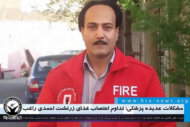 ارگان خبری مجموعه فعالان حقوق بشر در ایران، امروز جمعه ۱۷ مردادماه ۱۳۹۹، زرتشت احمدی راغب، فعال مدنی زندانی در پنجاه و چهارمین روز از اعتصاب غذا با مشکلات عدیده جسمی ازجمله کاهش شدید وزن، خونریزی معده و روده، افت فشار خون، کم سویی چشم و اختلال خواب مواجه شده است.
