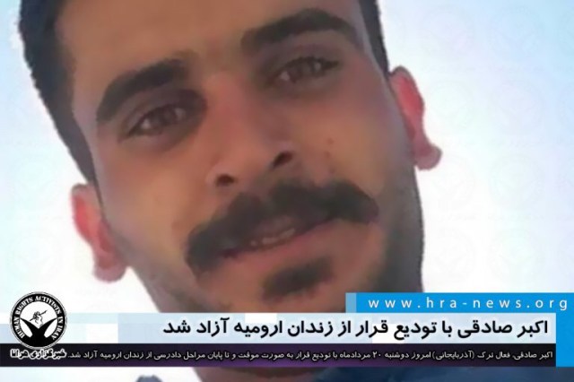 ارگان خبری مجموعه فعالان حقوق بشر در ایران، امروز دوشنبه ۲۰ مردادماه ۱۳۹۹، اکبر صادقی، فعال ترک (آذربایجانی) با تودیع قرار ۵۰ میلیون تومانی به صورت موقت و تا پایان مراحل دادرسی از زندان ارومیه آزاد شد.