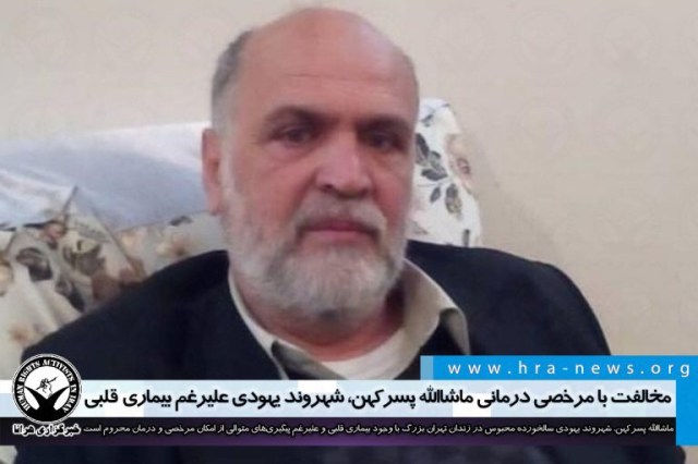 ارگان خبری مجموعه فعالان حقوق بشر در ایران، ماشاالله پسرکهن، شهروند یهودی محبوس در زندان تهران بزرگ با وجود بیماری قلبی و علیرغم پیگیریهای متوالی از امکان مرخصی و درمان محروم است.