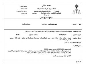 بر اساس این ابلاغیه وی باید امروز یکشنبه ۲۶ مردادماه در شعبه تعیین شده حضور یابد.