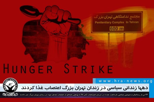 به گزارش خبرگزاری هرانا، ارگان خبری مجموعه فعالان حقوق بشر در ایران، ۷۲ تن از زندانیان و متهمین سیاسی بازداشت شده در جریان اعتراضات سراسری آبان ۹۸ از صبح امروز یکشنبه ۲۶ مرداد ۱۳۹۹ در زندان تهران بزرگ اعتصاب غذا کردهاند.