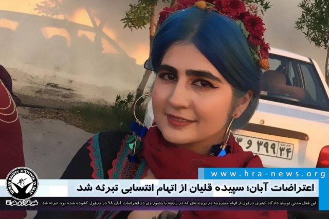 ارگان خبری مجموعه فعالان حقوق بشر در ایران، سپیده قلیان، فعال مدنی محبوس در زندان اوین، از اتهام مطروحه در پروندهای که پیشتر در رابطه با حضور وی در اعتراضات آبان ۹۸ در دزفول برای او گشوده شده بود، تبرئه شد.