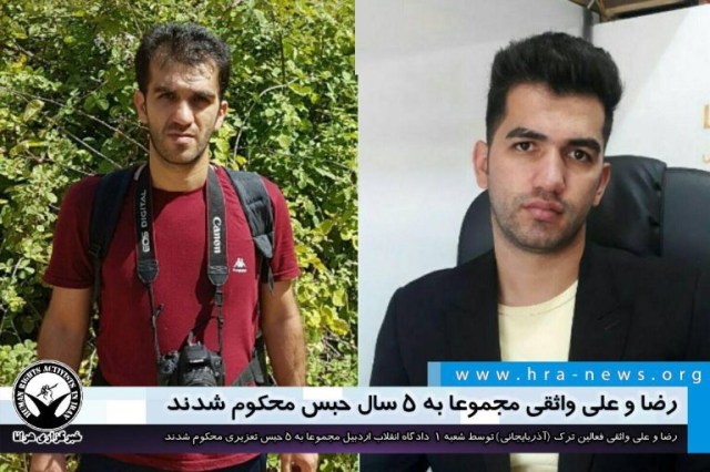 ارگان خبری مجموعه فعالان حقوق بشر در ایران، علی و رضا واثقی فعالین ترک (آذربایجانی) توسط شعبه ۱ دادگاه انقلاب اردبیل مجموعا به ۵ حبس تعزیری محکوم شدند.
