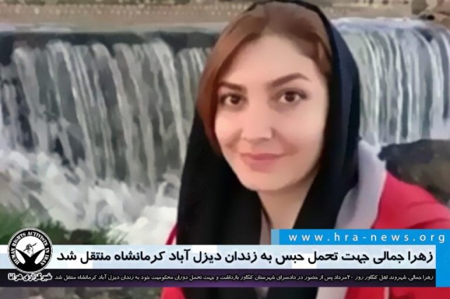 ارگان خبری مجموعه فعالان حقوق بشر در ایران، زهرا جمالی، شهروند اهل کنگاور در تاریخ ۲۰ مردادماه ۱۳۹۹، جهت تحمل دوران محکومیت خود به زندان دیزل آباد کرمانشاه منتقل شد.