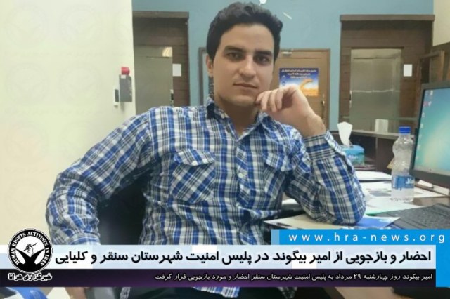 ارگان خبری مجموعه فعالان حقوق بشر در ایران، روز چهارشنبه ۲۹ مرداد ۱۳۹۹، امیر بیگوند، شهروند اهل شهرستان سنقر و کلیایی واقع در استان کرمانشاه به پلیس امنیت شهرستان سنقر احضار شد.