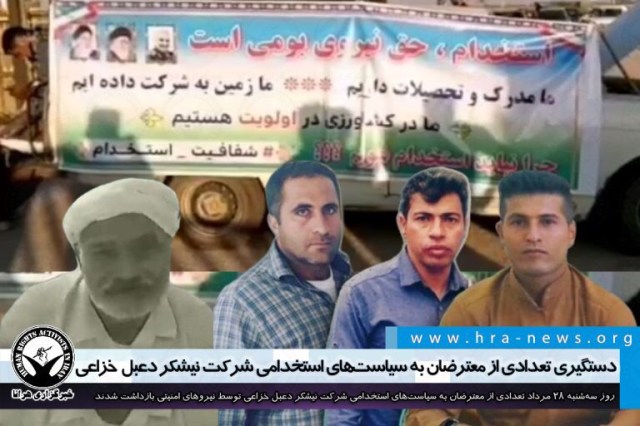 ارگان خبری مجموعه فعالان حقوق بشر در ایران، روز سهشنبه ۲۸ مرداد تعدادی از معترضان به سیاستهای استخدامی شرکت کشت و صنعت نیشکر دعبل خزاعی و بیتوجهی به ظرفیتهای بومی توسط نیروهای امنیتی بازداشت شدند.