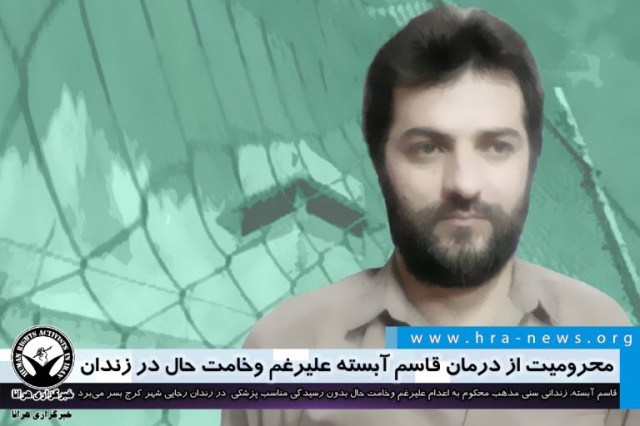 ارگان خبری مجموعه فعالان حقوق بشر در ایران، قاسم آبسته، زندانی سنی مذهب محکوم به اعدام علیرغم وخامت حال بدون رسیدگی مناسب پزشکی در در زندان رجایی شهر کرج بسر میبرد.