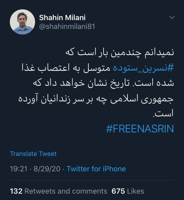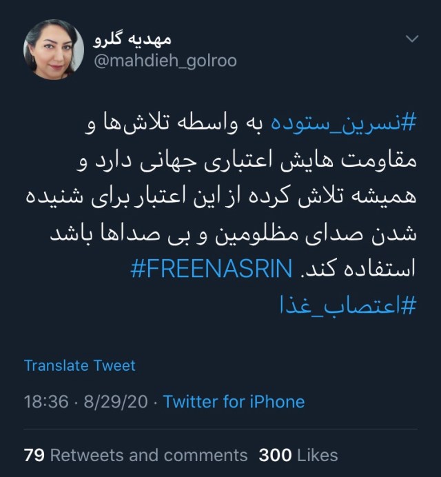 کاربران توییتر شامگاه شنبه در کارزاری ضمن اعتراض به زندانی بودن نسرین ستوده، خواهان آزادی این وکیل و فعال حقوق بشر شدند. ستوده از ۲۱ مردادماه با درخواست آزادی زندانیان سیاسی دست به اعتصاب غذا زده است.