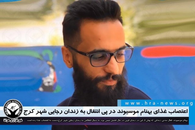 ارگان خبری مجموعه فعالان حقوق بشر در ایران، بهنام موسیوند، فعال مدنی زندانی که پیش از این در زندان اوین در حال تحمل حبس بود به زندان رجایی شهر کرج منتقل شده است.