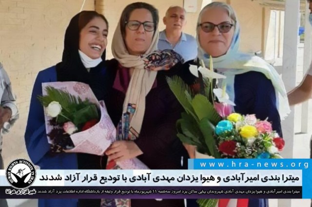 میترا بندی امیرآبادی و هیوا یزدان مهدی آبادی شهروندان بهایی ساکن یزد امروز سهشنبه ۱۱ شهریورماه، پس از سه ماه بازداشت موقت با تودیع قرار وثیقه تا پایان مراحل دادرسی از بازداشتگاه اداره اطلاعات یزد آزاد شدند. این شهروندان در تاریخ ۱۰ خردادماه امسال توسط نیروهای امنیتی در منزل خود دستگیر شدند و با مخالفت قاضی پرونده برای صدور قرار و آزادی موقت، تاکنون به صورت بلاتکلیف در بازداشت بسر میبردند.