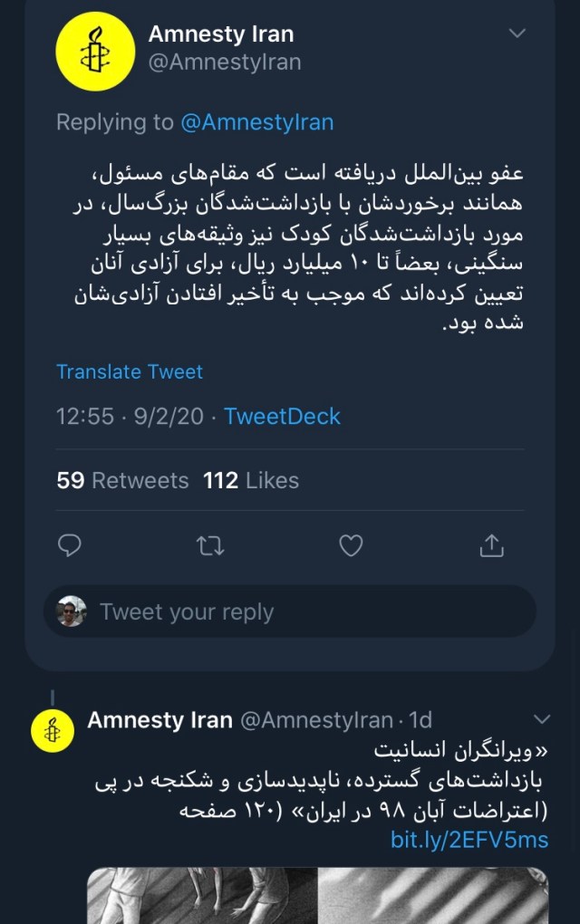 برخی کاربران درباره ادامه شکنجه شهروندان به دلیل «اعتراض» انتقاد کرده و همچنین این اقدامات را محکوم کردهاند.
