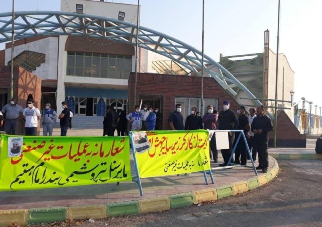 همچنین کارکنان شرکت خوارزمی پتروشیمی بندر امام در اعتراض به تصمیم هلدینگ خلیج فارس مبنی بر انتقال آنها به شرکت عملیات غیرصنعتی و خدمات صنایع پتروشیمی بندر ماهشهر تجمع کردند.