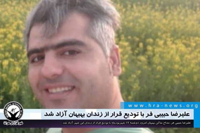ارگان خبری مجموعه فعالان حقوق بشر در ایران، امروز دوشنبه ۱۷ شهریورماه ۱۳۹۹، علیرضا حبیبی فر، مداح ساکن بهبهان از زندان این شهر آزاد شد.