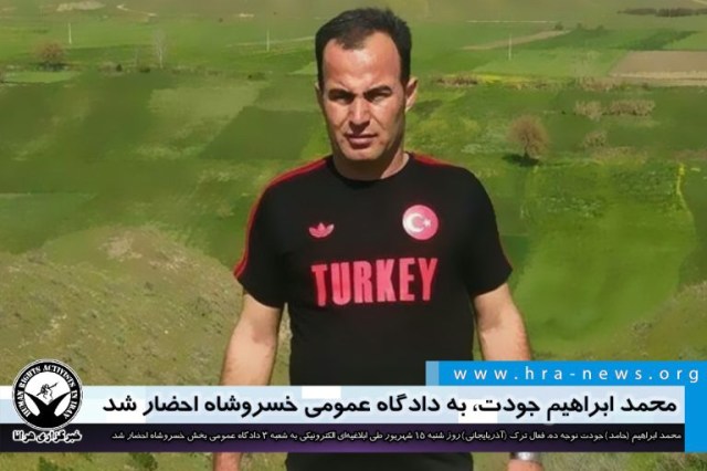 ارگان خبری مجموعه فعالان حقوق بشر در ایران، روز شنبه ۱۵ شهریور ۱۳۹۹، محمد ابراهیم (حامد) جودت، فعال ترک (آذربایجانی) طی ابلاغیهای الکترونیکی به شعبه ۳ دادگاه عمومی بخش خسروشاه احضار شد.