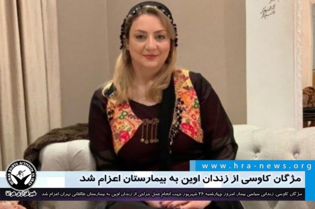 مژگان کاوسی، زندانی سیاسی بیمار، امروز چهارشنبه ۲۶ شهریور جهت انجام عمل جراحی به بیمارستان طالقانی تهران اعزام شد. خانم کاوسی که از تاریخ ۳۰ اردیبهشت امسال دوران محکومیت خود را در بند زنان زندان اوین سپری میکند، به بیماری گوارشی و هموروئید مبتلا است و نیاز به انجام عمل هموروئید دارد.