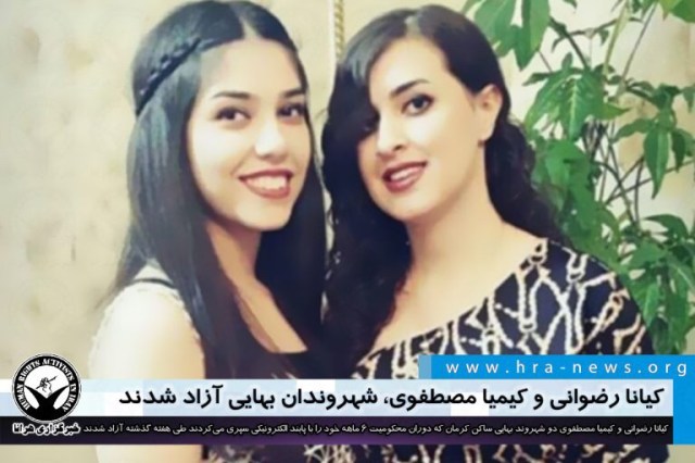 به گزارش خبرگزاری هرانا، ارگان خبری مجموعه فعالان حقوق بشر در ایران، کیانا رضوانی و کیمیا مصطفوی دو شهروند بهایی ساکن کرمان طی هفته گذشته آزاد شدند.