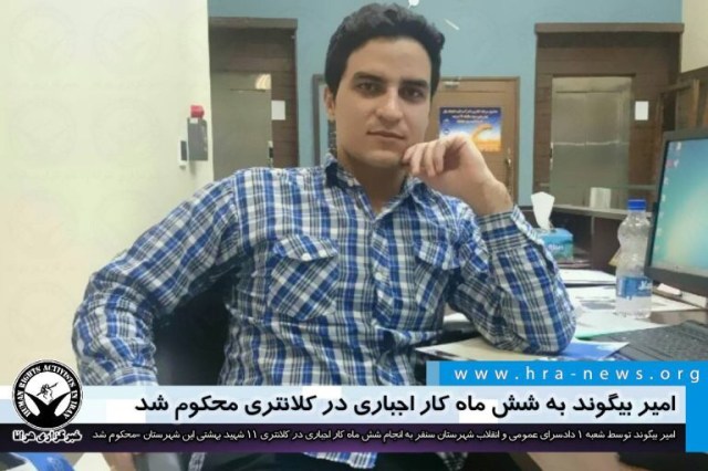 ارگان خبری مجموعه فعالان حقوق بشر در ایران، امیر بیگوند، توسط شعبه ۱ دادسرای عمومی و انقلاب شهرستان سنقر و کلیایی به ۶ ماه کار اجباری محکوم شد.