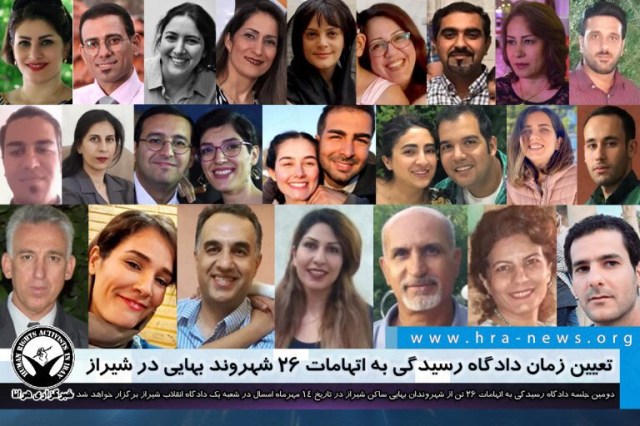 دومین جلسه دادگاه رسیدگی به اتهامات پریسا روحی زادگان، اسماعیل روستا، بهاره نوروزی، بهنام عزیزپور، ثمره آشنایی، رامین شیروانی، رضوان یزدانی، سروش ایقانی صغادی، سعید حسنی، شادی صادق اقدم، شمیم اخلاقی، صهبا فرح بخش، صهبا مصلحی، عهدیه عنایتی، فربد شادمان، فرزاد شادمان، لالا صالحی، مژگان غلام پور سعدی، مرجان غلام پور، مریم اسلامی مهدی آبادی، مهیار سفیدی میاندوآب، نبیل تهذیب، نسیم کاشانی نژاد، نوشین زنهاری، ورقا کاویانی و یکتا فهندژ سعدی ۲۶ تن از شهروندان بهایی ساکن شیراز، پس از رفع ایرادات در دادسرا، در تاریخ ۱۴ مهرماه امسال در شعبه یک دادگاه انقلاب شیراز برگزار خواهد شد. جلسه نخست دادگاه این شهروندان در تاریخ ۲۶ خرداد امسال در همین شعبه برگزار شد. در جریان این جلسه وکلای متهمان ایراداتی را در پرونده به قاضی گوشزد کردند و نهایتا قاضی گفته بود پرونده باید برای بررسی بیشتر مجددا به دادسرا برگردد.