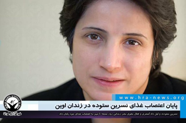 ارگان خبری مجموعه فعالان حقوق بشر در ایران، روز جمعه ۴ مهرماه ۱۳۹۹، نسرین ستوده، وکیل دادگستری و فعال حقوق بشر زندانی به اعتصاب غذای خود پایان داد.