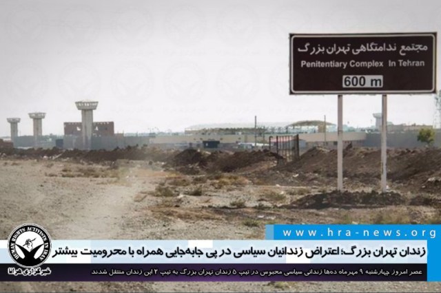 عصر امروز چهارشنبه ۹ مهرماه دهها زندانی سیاسی محبوس در تیپ ۵ زندان تهران بزرگ به تیپ ۲ این زندان که پیش از این محل نگهداری زندانیان معتاد به مواد مخدر بوده است، منتقل شدند. دهها تن از این افراد در پی انتقال خود به این مکان دست به اعتراض زدند. انتقال این زندانیان در حالی است که اغلب این افراد از اقشار ضعیف اقتصادی هستند و از زمان بازداشت و ورود خود به زندان اقدام به خریداری اقلامی چون یخچال، تلویزیون و… کردهاند و اکنون اجازه جابهجایی هیچیک از اقلام خریداری شده به آنها داده نشده است.