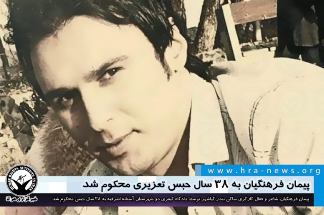 ارگان خبری مجموعه فعالان حقوق بشر در ایران، پیمان فرهنگیان، شاعر و فعال کارگری ساکن بندر کیاشهر به ۳۸ سال حبس تعزیری محکوم شد.