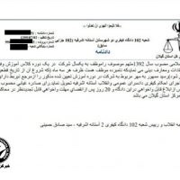 به دستور قاضی آقای فرهنگیان موظف است هر ۳ ماه ( که شروع آن از زمان قطعیت حکم محاسبه میشود) رسید ممهور به مهر مربوط به شرکت در دوره آموزشی تعیین شده مذکور را از مرجع ذیربط دارای مجوز رسمی به اجرای احکام کیفری دادسرای عمومی و انقلاب آستانه اشرفیه تحویل نماید.
