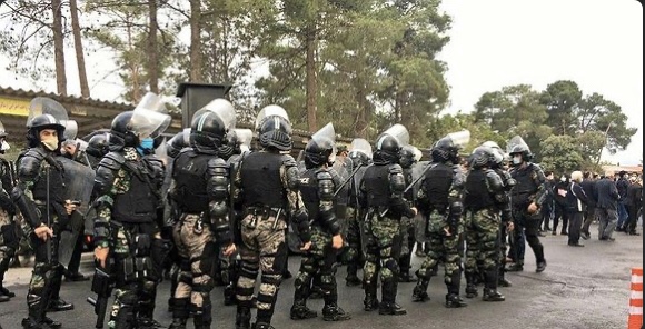 صدای نیروهای امنیتی را میتوان در ویدیوهای شبکههای اجتماعی از مقابل بیمارستان جم شنید که بر سر مردم فریاد میزنند: «برو… برو…»