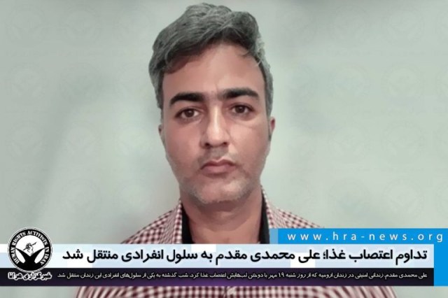 ارگان خبری مجموعه فعالان حقوق بشر در ایران، شب شنبه ۱۹ مهرماه ۱۳۹۹، علی محمدی مقدم، زندانی امنیتی در زندان ارومیه به یکی از سلولهای انفرادی این زندان منتقل شد.