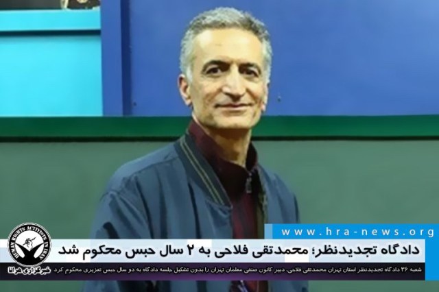 ارگان خبری مجموعه فعالان حقوق بشر در ایران، دادگاه تجدیدنظر استان تهران محکومیت محمدتقی فلاحی، عضو هیات مدیره کانون صنفی معلمان را بدون تشکیل جلسه دادگاه عینا تایید کرد.