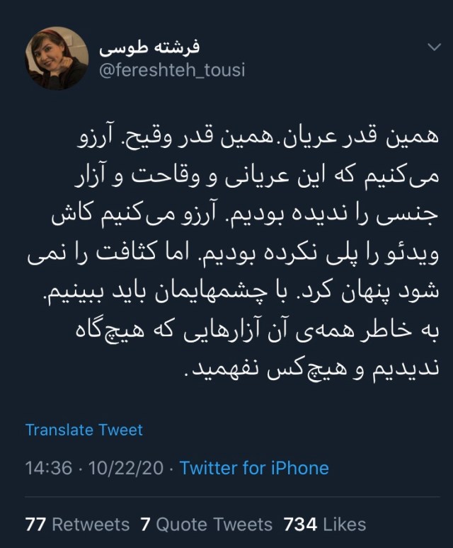 کاربرانی هم تعرض «عریان و وقیح» به این زن را مورد اعتراض قرار دادهاند.