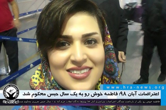فاطمه خوش رو، شهروند اهل خرم آباد و یکی از بازداشت شدگان اعتراضات سراسری آبان ۹۸ توسط دادگاه انقلاب این شهر به صورت غیابی به ۱ سال حبس تعزیری محکوم شد. این حکم در تاریخ ۱ آبانماه در آستانه اولین سالروز این اعتراضات به وی ابلاغ شده است.