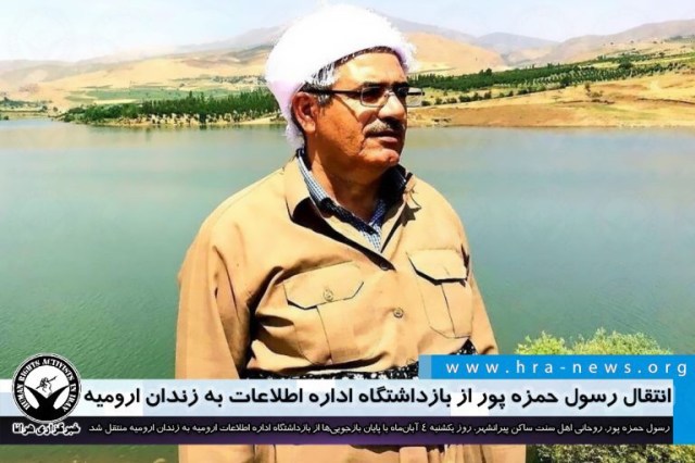 ارگان خبری مجموعه فعالان حقوق بشر در ایران، روز یکشنبه ۴ آبانماه ۱۳۹۹، رسول حمزه پور، روحانی اهل سنت، از بازداشتگاه اداره اطلاعات ارومیه به زندان این شهر منتقل شد.