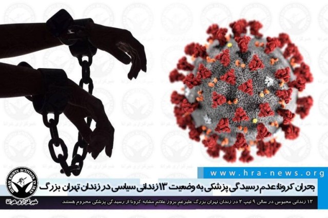 ارگان خبری مجموعه فعالان حقوق بشر در ایران، ۱۳ زندانی محبوس در سالن ۹ تیپ ۲ در زندان تهران بزرگ علیرغم دارای بودن علائم ابتلا به ویروس کرونا از رسیدگی پزشکی محروم مانده اند.
