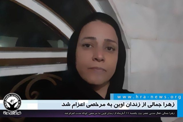 ارگان خبری مجموعه فعالان حقوق بشر در ایران، عصر روز یکشنبه ۱۱ آبانماه ۱۳۹۹، زهرا جمالی، فعال مدنی از زندان اوین به مرخصی کوتاه مدتی اعزام شد.