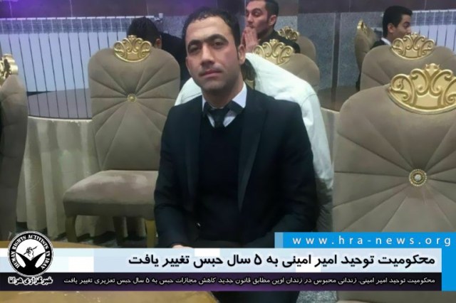 ارگان خبری مجموعه فعالان حقوق بشر در ایران، محکومیت توحید امیر امینی، فعال ترک (آذربایجانی) محبوس در زندان اوین به ۵ سال حبس تعزیری تقلیل یافت.