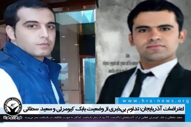 ارگان خبری مجموعه فعالان حقوق بشر در ایران، امروز جمعه ۱۶ آبانماه ۱۳۹۹، سعید سلطانی و بابک کیومرثی، فعالین ترک (آذربایجانی) باگذشت ۳۴ روز از زمان بازداشت کماکان به صورت بلاتکلیف در بازداشت بسر میبرند.