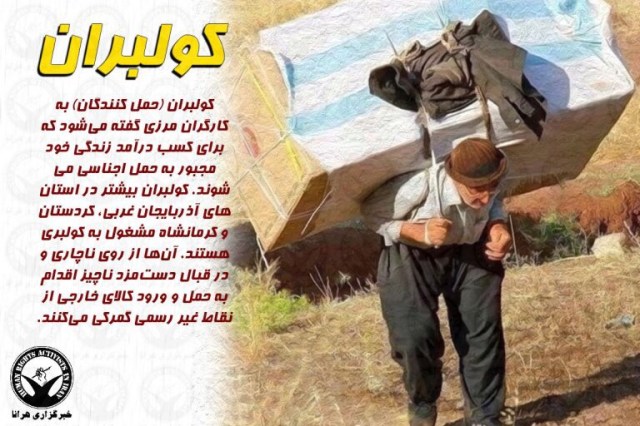 کولبری، شغلی کاذب و مشقت بار است که مردم مناطق مرزی در پی فقدان فرصت های شغلی به آن روی می آورند و سالانه ده ها تن در مواجهه با خطرات طبیعی و یا در پی شلیک نیروهای مرزبانی کشته و یا زخمی می شوند.