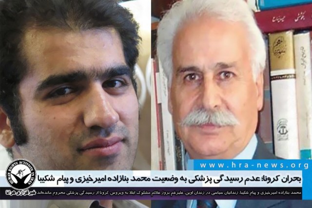 ارگان خبری مجموعه فعالان حقوق بشر در ایران، محمد بنازاده امیرخیزی و پیام شکیبا، زندانیان سیاسی محبوس در زندان اوین، علیرغم بروز علائم مشکوک ابتلا به ویروس کرونا از رسیدگی پزشکی محروم ماندهاند.