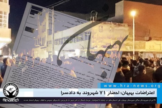 ارگان خبری مجموعه فعالان حقوق بشر در ایران، ۷۱ تن از شهروندان ساکن بهبهان در رابطه با اعتراضات تیرماه امسال در این شهرستان دادسرای عمومی و انقلاب بهبهان احضار شدند.