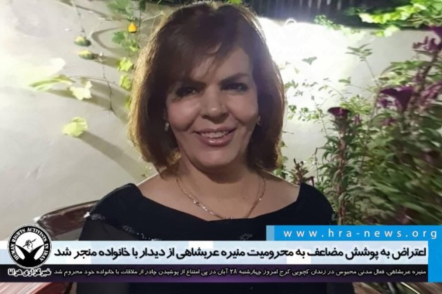 ارگان خبری مجموعه فعالان حقوق بشر در ایران، امروز چهارشنبه ۲۸ آبانماه ۱۳۹۹، منیره عربشاهی، فعال مدنی مخالف حجاب اجباری محبوس در زندان کچویی کرج از ملاقات با خانواده خود محروم شد.