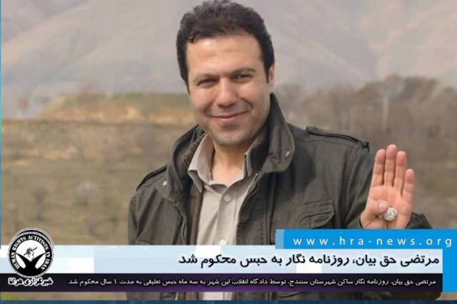 ارگان خبری مجموعه فعالان حقوق بشر در ایران، مرتضی حق بیان روزنامهنگار ساکن شهرستان سنندج، توسط دادگاه انقلاب این شهر به حبس محکوم شد.