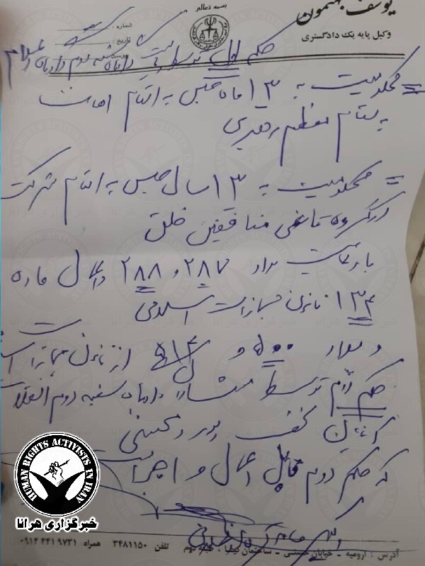 پیش تر به نقل از خانواده و وکیل این زندانی از محکومیت وی در دو پرونده به اعدام و ۱۳ سال حبس خبر داده بود، با گذشت زمان و پایان مهلت اعتراض، وکیل پرونده به جزئیات حکم صادره دسترسی پیدا کرده است، بر این اساس مشخص شد رای صادره نهائی ۱۳ سال حبس به اتهام شرکت در گروه باغی (اشاره مصداق در متن حکم به سازمان مجاهدین خلق است) و ۱۳ ماه حبس به اتهام توهین به رهبری برای این زندانی است.
