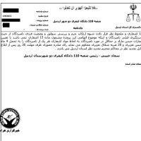 بر اساس این حکم که توسط شعبه ۱۱۰ دادگاه کیفری دو اردبیل به ریاست قاضی سجاد حبیبی صادر و ابلاغ شده است، میثم جولانی و علی خیرجو هر یک از بابت اتهام “مشارکت در اخلال در نظم عمومی از طریق ایجاد هیاهو و جنجال” هر کدام به ۴ ماه حبس تعزیری و ۴۰ ضربه شلاق محکوم شدند.
