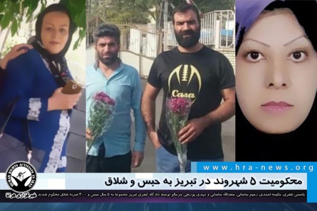 ارگان خبری مجموعه فعالان حقوق بشر در ایران، یاسمن ظفری، حکیمه احمدی، رحیم ساسانی، سعدالله ساسانی و مهدی پورعلی خرمالو، فعالین ترک (آذربایجانی) به حبس و شلاق محکوم شدند.